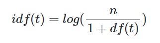 -분모에 1을 더하는 이유: 특정 단어가 전체 문서에서 등장하지 않아 분모가 0이 되는 상황 방지