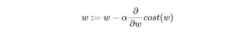 - (현재w) - {(현재 w에서의 기울기) x (학습률 a)}