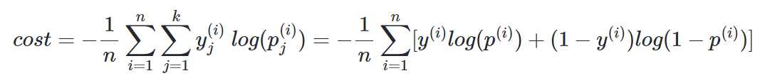 소프트맥스 함수의 최종 비용 함수에서 k가 2라고 가정하면 결국 로지스틱 회귀의 비용 함수와 같음