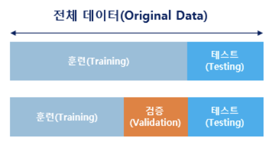 -과소적합(Underfitting): 훈련데이터, 테스트데이터 모두 정확도 낮음