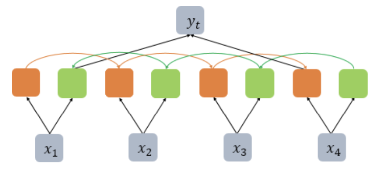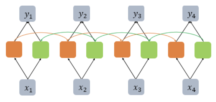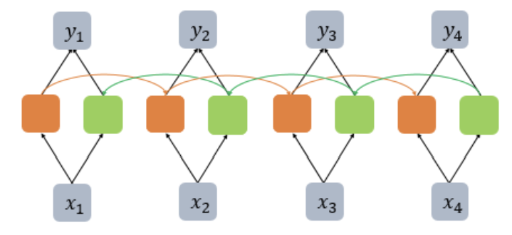 -t시점에서 t-1시점(Forward States)뿐 아닌 t+1시점(Backward States)의 은닉상태값도 사용하는 것