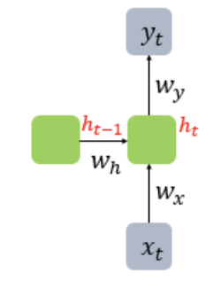 * 가중지 Wx, Wh, Wy는 같은 층에서 동일한 값 공유, 은닉층 2개 이상일 경우 서로 다른 층 간에는 다름