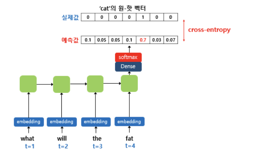 model.add(Dense(vocab_size, activation='softmax')) # 출력층 추가(전결합층)