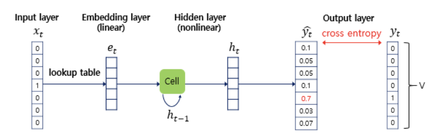Step2) 출력층: Step1에서 출력된 ht에 가중치 Wy가 곱해져 yt를 출력