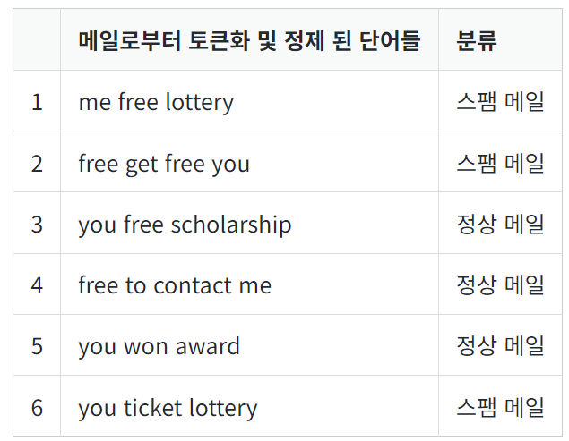 즉, 나이브 베이즈 분류기는 오직 빈도수만을 고려하기 때문에 토큰화 이전의 단어의 순서가 중요하지 않음.