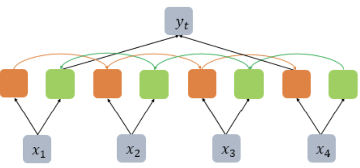 return_sequences=False로 설정하여 위와 같이 순방향 LSTM은 마지막 시점 은닉상태를, 역방향 LSTM은 첫번째 시점 은닉상태를 반환
