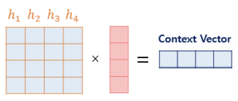 Attention Value = 인코더의 각 은닉상태 h와 각 어텐션 가중치값들을 곱하고 모두 더한 가중합