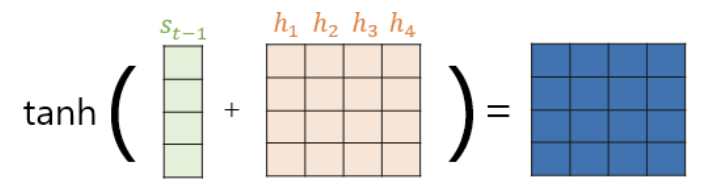 최종적으로 신경망 연산을 한 번 더 추가한다. v에 가중치행렬을 곱하고 tanh 함수를 지나게 한다.